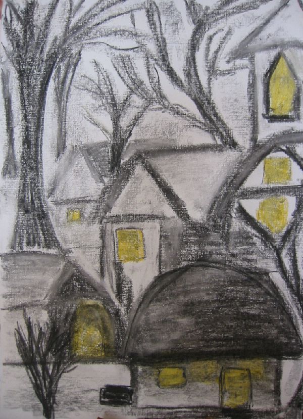 Kohle auf Leinwandpapier